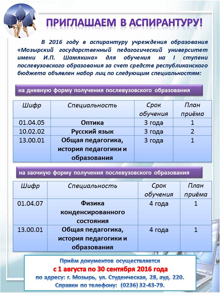 Конкурс по назначению стипендий Президента Республики Беларусь аспирантам на 2017 год