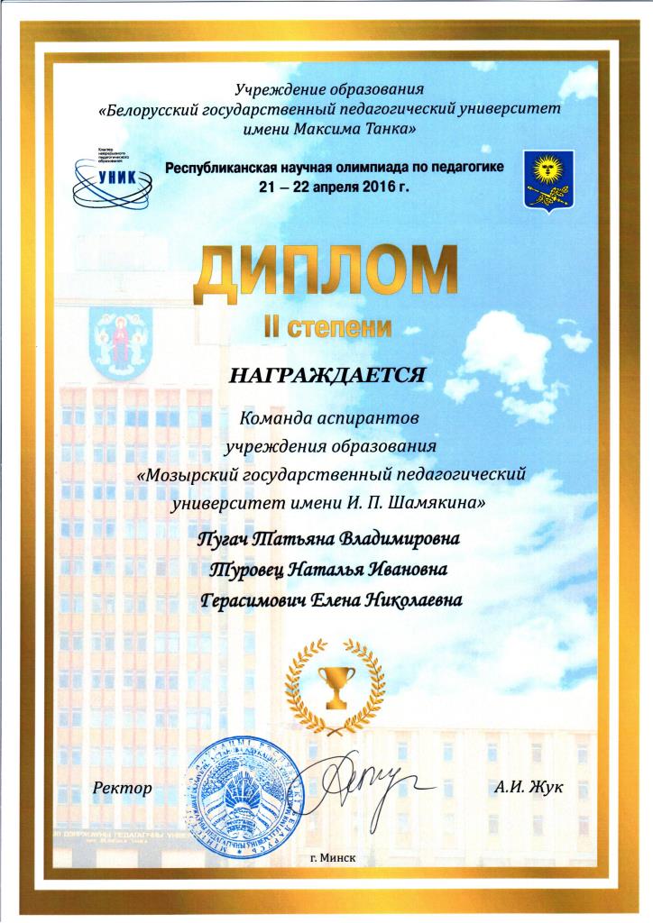 По итогам олимпиады команда аспирантов УО МГПУ им. И.П.Шамякина награждена дипломом II степени.ПОЗДРАВЛЯЕМ!