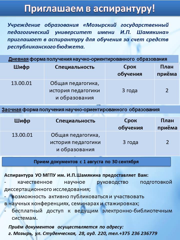 Аспирантура УО МГПУ им. И.П.Шамякина