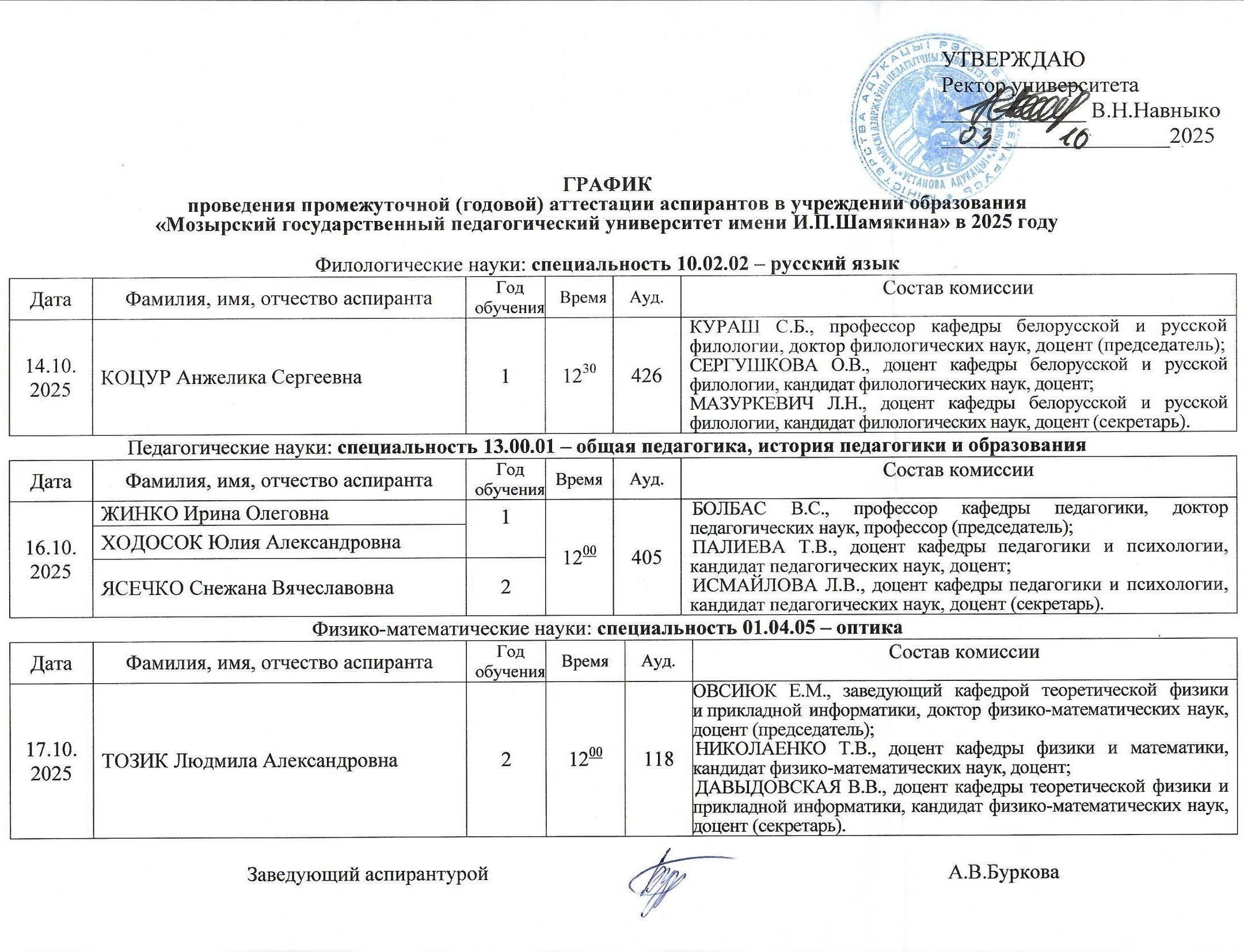 по итогам учебного года: на заседании кафедры – в сентябре, на заседании аттестационной комиссии – в октябре.