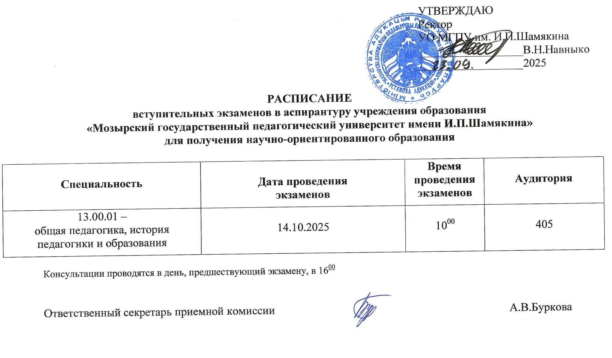Расписание вступительных экзаменов